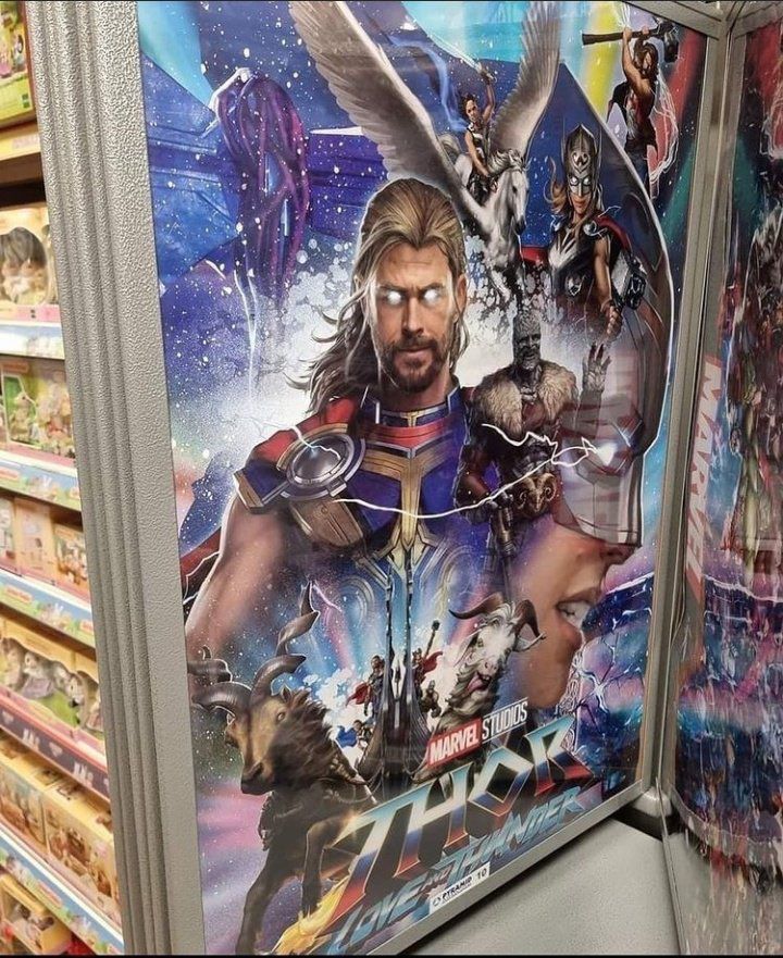In attesa che i Marvel Studios diffondano un primo, vero poster di Thor: Love and Thunder, il regista Taika Waititi ha pensato di condividere su Twitter uno scatto realizzato in un negozio che ha messo in vendita una locandina non ufficiale del film. Niente di particolarmente strano, direte voi, se non fosse che si tratta di un collage a dir poco folle in cui compaiono, oltre a delle immagini dei vari personaggi non esattamente di alta qualità, addirittura due bellissime capre in pose bizzarre. Inutile dire che il regista, noto per aver dato al franchise di Thor – con il suo Ragnarok – un taglio umoristico che verrà mantenuto anche nel nuovo film, ha apprezzato assolutamente.